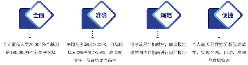 對(duì)超過(guò)20,000個(gè)基因(共計(jì)超過(guò)180,000個(gè)外顯子)進(jìn)行目標(biāo)區(qū)域富集與高深度測(cè)序,并利用個(gè)人基因組分析管理軟件自動(dòng)化分析測(cè)序數(shù)據(jù)。不僅能夠全面解讀OMIM數(shù)據(jù)庫(kù)中所有致病基因明確的單基因遺傳病,還可通過(guò)對(duì)家系樣本分析,尋找新的致病基因。