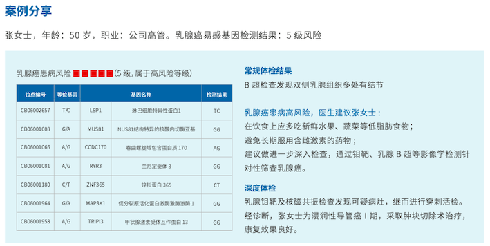 愛(ài)身譜®乳腺癌易感基因檢測(cè)通過(guò)檢測(cè)受檢者與乳腺癌相關(guān)的易感基因,精準(zhǔn)評(píng)估疾病發(fā)生風(fēng)險(xiǎn),在疾病發(fā)生之前有針對(duì)性的預(yù)防,改善自身的生活環(huán)境和生活習(xí)慣,從而有效降低或避免乳腺癌的發(fā)生。