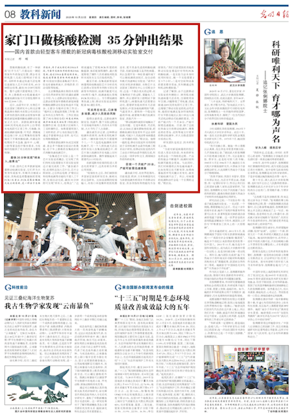 截至目前,全集成新型冠狀病毒現(xiàn)場(chǎng)檢微流控芯片分析系統(tǒng)已獲得4項(xiàng)發(fā)明專利和5項(xiàng)實(shí)用新型專利授權(quán),檢測(cè)靈敏度可達(dá)150拷貝/毫升,檢測(cè)速度比常規(guī)PCR快3倍以上。為方便檢測(cè)結(jié)果快速上報(bào),移動(dòng)實(shí)驗(yàn)室還同時(shí)配備5G通信系統(tǒng)。