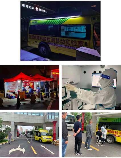 5月中旬,安徽省突發(fā)新冠疫情,為保障六安市核酸檢測按時完成,博奧晶典“輕騎兵”全集成新冠病毒核酸檢測移動實驗室連夜趕到六安。在六安市衛(wèi)健委的統(tǒng)一部署下有序開展當(dāng)?shù)鼐用裥鹿诓《镜暮怂釞z測工作。
