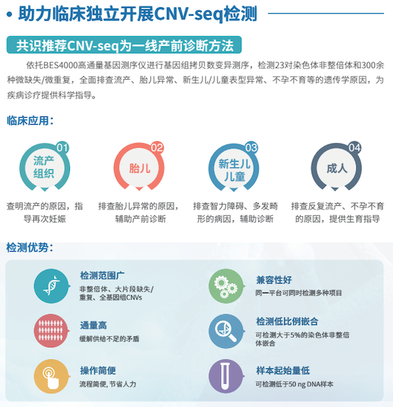 王教授詳細介紹了博奧基于BES4000平臺的CNV-seq技術(shù),指出在產(chǎn)前診斷領(lǐng)域引入STR(short tandem repeat,短片段重復(fù)序列)分析的CNV-seq(+)技術(shù),不僅可有效排除母源污染,還可高效檢出三倍體和UPD,提高陽性檢出率。2019年4月發(fā)布的《低深度全基因組測序技術(shù)在產(chǎn)前診斷中的應(yīng)用專家共識》指出,具備條件的產(chǎn)前診斷機構(gòu)可將CNV-seq作為一線產(chǎn)前診斷技術(shù)應(yīng)用于臨床。CNV-seq技術(shù)不僅能輔助臨床判斷胎兒是否存在染色體異常,還能提高復(fù)發(fā)性流產(chǎn)夫婦染色體異常檢出率。