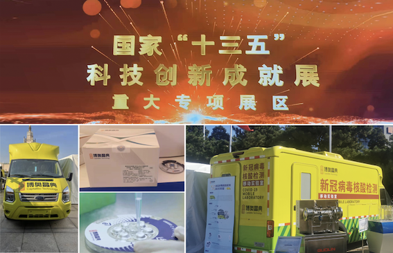 展覽多維度、全方位地展示了中國科技實(shí)力躍升嶄新臺(tái)階,精選、優(yōu)選了一批重大標(biāo)志性科技成果,既有國之重器,又有惠及民生的創(chuàng)新產(chǎn)品。作為科技賦能抗疫的“排頭兵”,在本次國家“十三五”創(chuàng)新成就展的科技抗疫展區(qū),博奧晶典攜呼吸道多病毒核酸檢測芯片系統(tǒng)、新型冠狀病毒2019-nCoV核酸檢測試劑盒(全集成碟式芯片法)、車載新冠病毒核酸檢測移動(dòng)實(shí)驗(yàn)室驚艷亮相。