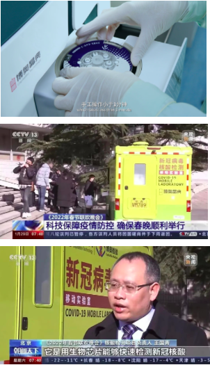 在2021、2022年央視春晚疫情防控工作中,以及2022年冬奧會開幕倒計(jì)時100天主題活動等重大活動中,“輕騎兵”均發(fā)揮了重要作用。這抹備受矚目的“晶典黃”是國內(nèi)首臺集采集和檢測為一體的移動式新冠病毒檢測實(shí)驗(yàn)室,裝載基于全新一代先進(jìn)的芯片實(shí)驗(yàn)室(Lab-on-a-chip)設(shè)計(jì)理念,檢測時僅需將樣本保存液加入芯片,封閉芯片后即可上機(jī),手工操作小于1分鐘。生物反應(yīng)全程(包括核酸提取、核酸純化、擴(kuò)增反應(yīng)、核酸檢測和結(jié)果判讀等)均集成在一個整體密閉、內(nèi)部分區(qū)的微流控芯片內(nèi),由全自動核酸分析儀完成,因此無需專業(yè)分區(qū)實(shí)驗(yàn)室,無需人工干預(yù),最大程度降低操作人員感染及樣本間交叉污染的風(fēng)險(xiǎn)。
