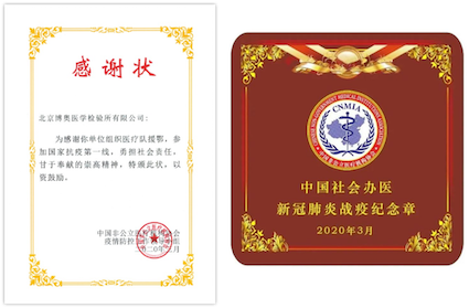 疫情期間,博奧晶典獲評“清華大學抗擊新冠肺炎疫情先進集體”、博奧晶典黨支部也榮獲“清華大學先進黨組織(黨支部)”稱號;中國非公立醫(yī)療機構(gòu)協(xié)會向博奧晶典旗下博奧檢驗援鄂醫(yī)療隊頒發(fā)感謝狀及紀念章;博奧晶典榮獲華夏時報“2020年度企業(yè)社會責任先鋒獎”、南方醫(yī)學網(wǎng)、基因谷、早篩網(wǎng)“2021基因檢測行業(yè)年度抗疫英雄企業(yè)”等榮譽稱號。