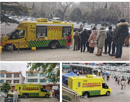 相比固定的實驗室和大型車載實驗室,“輕騎兵”車身小巧機動,可以更靈活地開赴各種應用場景,如口岸站點、機場、碼頭等特殊防疫區(qū)域及為大會提供全程應急核酸檢測,針對重點人群提供核酸就地即時篩查,將滅火變成防火,把潛在的疫情風險消滅于萌芽之中??挂咂陂g,“輕騎兵”多次令出而動,為六安、瑞麗、廣州、東莞、南京、淮安、綿陽、鄭州、武漢等地抗疫一線提供快速便捷的就地檢測,成為全國疫情聯(lián)防聯(lián)控的重要利器。