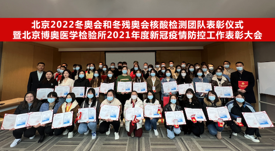 3月30日上午,北京2022冬奧會和冬殘奧會核酸檢測團隊表彰儀式暨北京博奧醫(yī)學檢驗所2021年度新冠疫情防控工作表彰大會在京舉辦。共有100余名博奧檢驗的工作人員獲得冬奧會和冬殘奧會組委會發(fā)來的紀念證書,冬奧冰雪情、一起向未來!在此,感謝并點贊所有參與冬奧及冬殘奧會的博奧人!