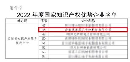 近日,國家知識(shí)產(chǎn)權(quán)局發(fā)布了“2022年度國家知識(shí)產(chǎn)權(quán)優(yōu)勢企業(yè)”評(píng)定結(jié)果公示。經(jīng)企業(yè)測評(píng)、推薦上報(bào)、省市專家審核確認(rèn)等嚴(yán)格篩選程序,博奧晶典旗下成都博奧晶芯生物科技有限公司(以下簡稱:博奧晶芯)憑借在知識(shí)產(chǎn)權(quán)創(chuàng)造、運(yùn)用、保護(hù)和管理方面的優(yōu)勢,榮獲“2022年度國家知識(shí)產(chǎn)權(quán)優(yōu)勢企業(yè)”稱號(hào)。