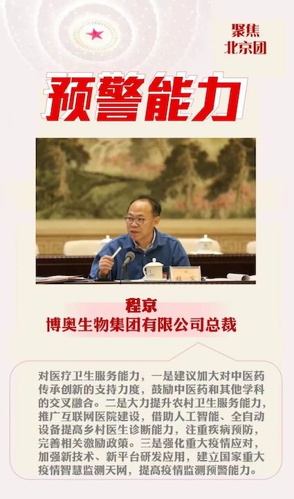 “我將在履職盡責中踐行以人民為中心的發(fā)展思想,立足更精準更有效地預防疾病,用心用情守護人民健康。”程京代表表示。