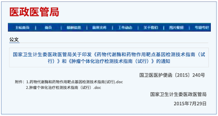 2015年7月31日,國家衛(wèi)生計生委醫(yī)政醫(yī)管局印發(fā)的《藥物代謝酶和藥物作用靶點(diǎn)基因檢測技術(shù)指南(試行)》中,明確給出“常見藥物代謝酶和藥物作用靶點(diǎn)基因遺傳變異檢測結(jié)果對臨床用藥的指導(dǎo)建議“:根據(jù) CYP2C19、CYP2C9、VKORC1、CYP4F2等基因的多態(tài)性檢測結(jié)果,可相應(yīng)調(diào)整藥物(華法林、氯吡格雷)的給藥方案。