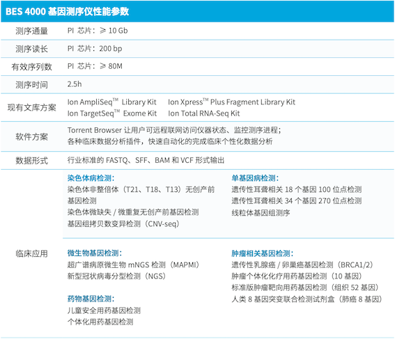 晶芯®BioelectronSeq 4000 基因測(cè)序儀(簡(jiǎn)稱 BES 4000)是由博奧與美國(guó) Thermo Fisher 公司合作在國(guó)內(nèi)研發(fā)、生產(chǎn)的新一代高通量測(cè)序儀。該款測(cè)序儀采用半導(dǎo)體芯片測(cè)序技術(shù),結(jié)合臨床檢測(cè)試劑盒和自動(dòng)化分析軟件,適合用于醫(yī)院獨(dú)立開展基因檢測(cè)工作。BES 4000 已于 2015 年 2 月獲得 CFDA 醫(yī)療器械注冊(cè)證(醫(yī)療器械注冊(cè)證號(hào):國(guó)械注準(zhǔn) 20203220502)。