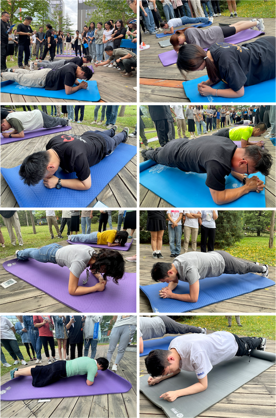激烈的比賽現(xiàn)場(chǎng),選手們擺好標(biāo)準(zhǔn)姿勢(shì),蓄勢(shì)待發(fā)。隨著時(shí)間的推移,大家不斷突破身體極限,每多一秒都是一份堅(jiān)持、一份超越,激發(fā)了大家敢為人先、不甘落后的斗志。場(chǎng)邊圍觀的員工也被現(xiàn)場(chǎng)的氣氛所感染,大聲吶喊助威,躍躍欲試。